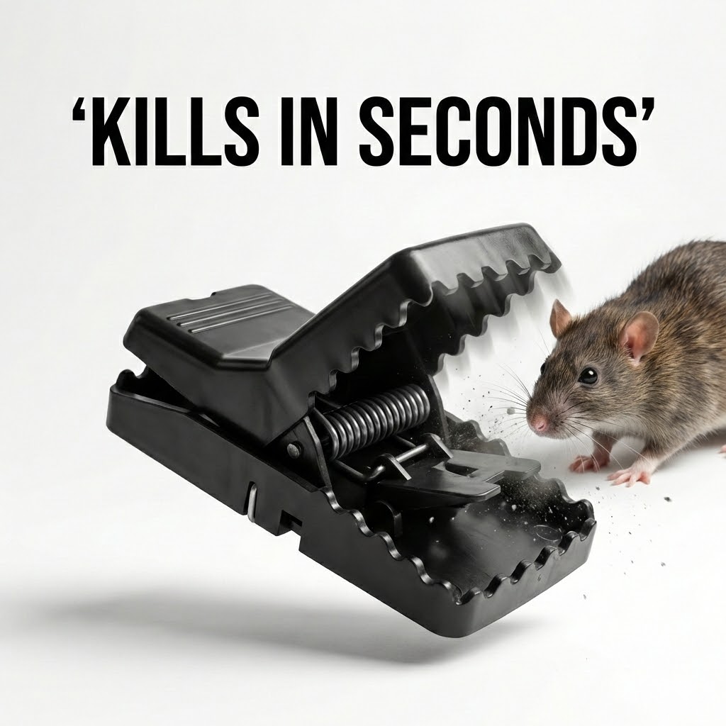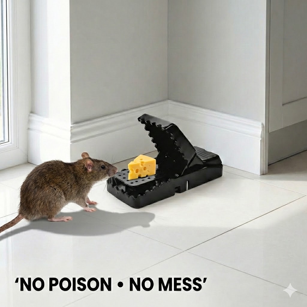 3️⃣ Place it along walls or rat pathways β€” snap! ⚑ Problem solved